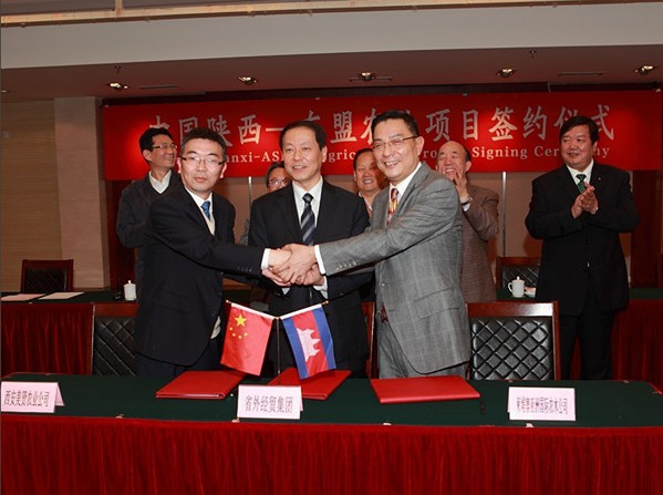 本次簽約以“互利合作,攜手發(fā)展”為主題。簽約項(xiàng)目結(jié)合柬埔寨振興國家農(nóng)業(yè)規(guī)劃,按照熱帶經(jīng)濟(jì)作物種植園的專業(yè)化產(chǎn)業(yè)技術(shù)要求,對(duì)柬埔寨國內(nèi)三萬公頃原始森林進(jìn)行全面改造。將其建成規(guī)模化、標(biāo)準(zhǔn)化、產(chǎn)業(yè)化的天然橡膠園、棕櫚園、木薯種植基地及其他經(jīng)濟(jì)作物園林,并在此基礎(chǔ)上,開展農(nóng)產(chǎn)品品種選育、進(jìn)出口、技術(shù)引進(jìn)等方面交流合作,特別是將陜西省楊凌農(nóng)業(yè)高科技產(chǎn)業(yè)示范區(qū)的農(nóng)業(yè)高科技成果引入包括柬埔寨在內(nèi)的東南亞各國,積極促成陜西-東盟農(nóng)業(yè)高科技基地的建設(shè),力求最終在柬埔寨國內(nèi)建設(shè)和運(yùn)營(yíng)具有示范意義的新型森林資源改造和農(nóng)業(yè)開發(fā)項(xiàng)目。該項(xiàng)的實(shí)施,將成為陜西省乃至西北省份最大的農(nóng)業(yè)合作項(xiàng)目。同時(shí),本項(xiàng)目也將整合項(xiàng)目所在地的優(yōu)勢(shì)旅游資源,開發(fā)具有熱帶風(fēng)情的森林及農(nóng)業(yè)特色旅游線路。積極引領(lǐng)陜西企業(yè)大步“走出去”。