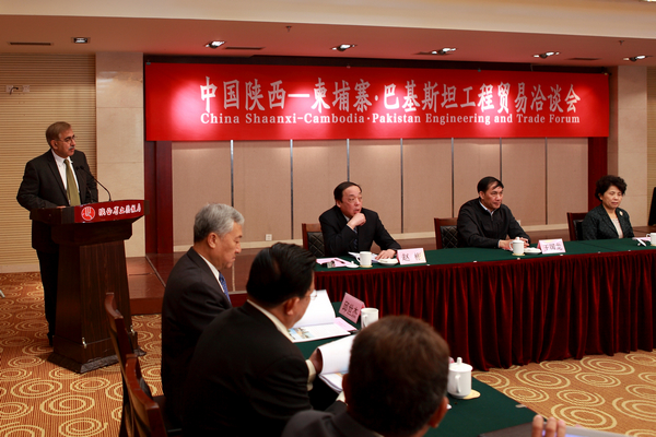 在第十七屆中國東西部合作與投資貿(mào)易洽談會上,由我集團(tuán)主辦的《中國陜西-柬埔寨·巴基斯坦工程貿(mào)易洽談》今天上午在陜西省止園飯店舉行。全國政協(xié)常委、陜西省政協(xié)副主席李冬玉出席,省國資委、省商務(wù)廳、省貿(mào)促會以及柬埔寨交通部、國公省、巴基斯坦黎明媒體集團(tuán)等政府要員和企業(yè)嘉賓出席會議,陜西當(dāng)?shù)?5家設(shè)計(jì)、施工、建材貿(mào)易企業(yè)約70人參會。