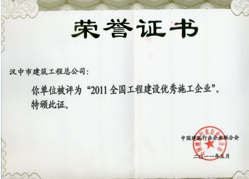 漢中市建筑工程總公司被中國建筑行業(yè)企業(yè)聯(lián)合會評為“2011全國工程建設(shè)優(yōu)秀施工企業(yè)”。5月27日,公司總經(jīng)理丁永忠同志和副總經(jīng)理羅建平同志在海南參加了2011中國工程建設(shè)/新居住時代(第6屆)博鰲論壇,并參加了隆重的頒獎典禮。