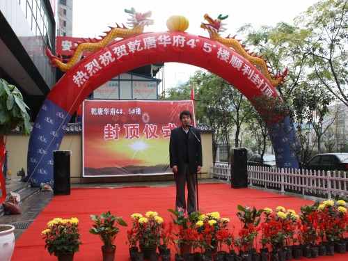 2010年10月26日,乾唐華府30層4#、5#住宅樓及地下車庫工程舉行了封頂儀式。集團(tuán)公司總會(huì)計(jì)師劉晏出席,集團(tuán)公司副總工程師、建設(shè)工程公司總經(jīng)理劉相杉,集團(tuán)辦公室主任梁平安以及集團(tuán)公司項(xiàng)目承建單位建設(shè)工程公司等人員到會(huì)參加。集團(tuán)公司總會(huì)計(jì)師劉晏在儀式上代表集團(tuán)公司作了發(fā)言講話。