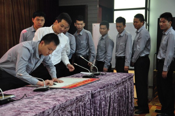 2014年9月12日,在歌聲、笑聲中,在各部經(jīng)理帶領(lǐng)部門員工簽訂優(yōu)質(zhì)服務(wù)承諾書的火熱氣氛和鏗鏘有力的宣誓口號聲中,長安大酒店第二十一屆優(yōu)質(zhì)服務(wù)質(zhì)量月活動(dòng)隆重拉開帷幕。