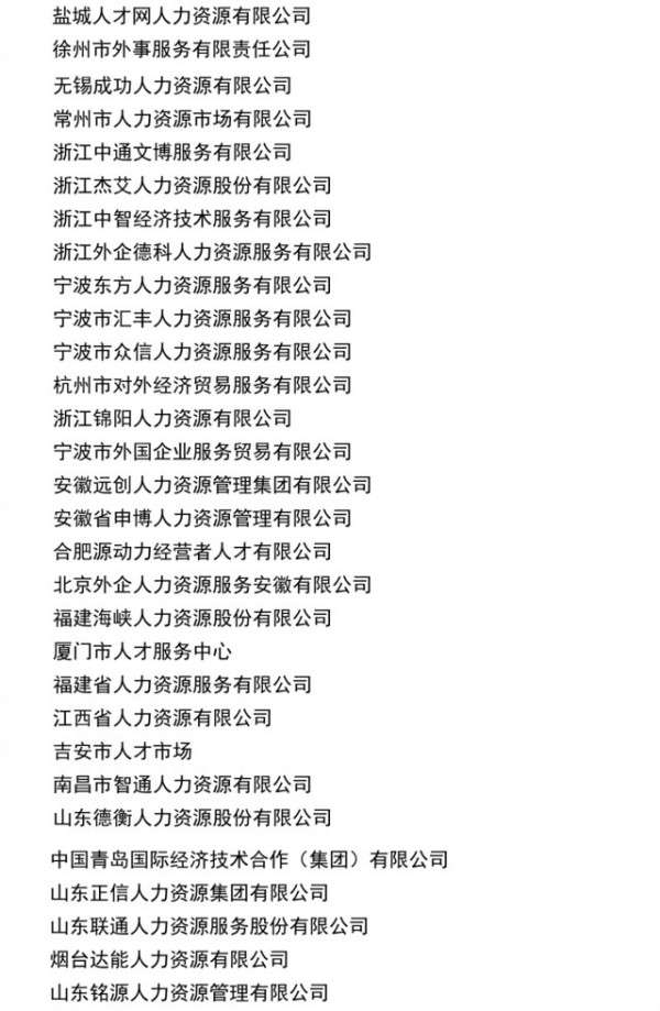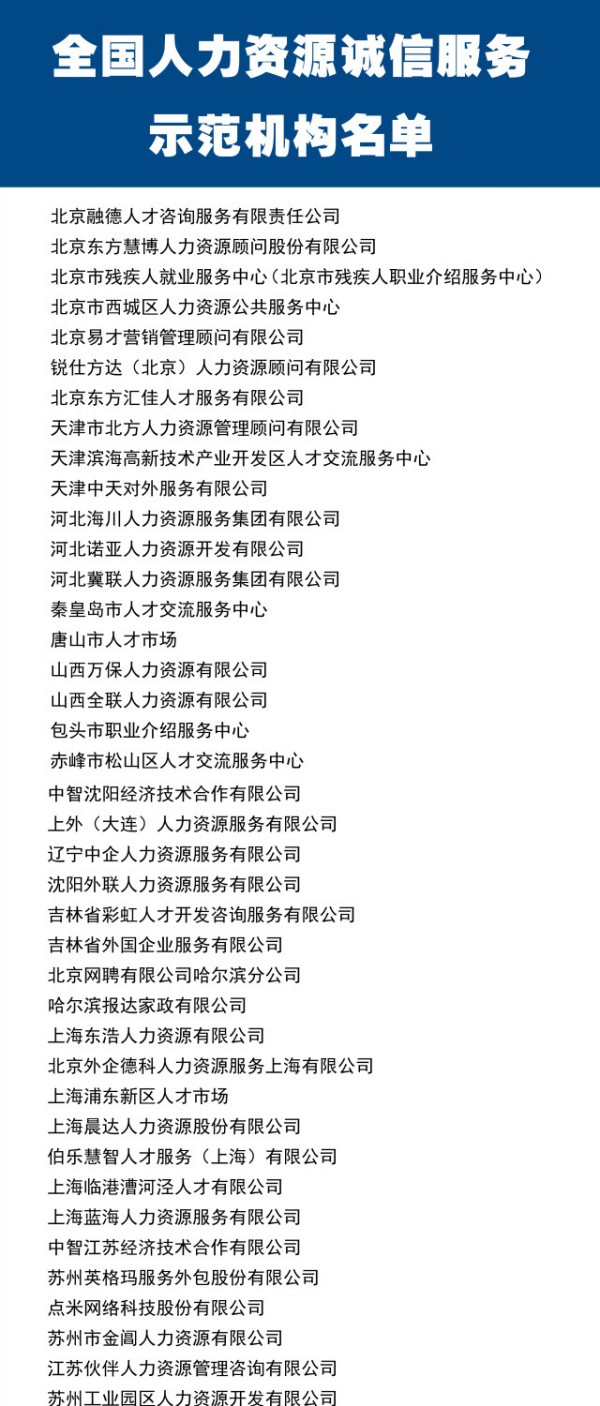附:128家“全國(guó)人力資源誠(chéng)信服務(wù)示范機(jī)構(gòu)”名單