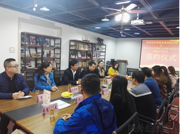 2018年1月11日上午,陜海投公司與西安方元市場研究有限責(zé)任公司在西安舉行戰(zhàn)略合作簽約儀式。陜海投公司董事長丁永忠與方元市場研究公司董事長兼CEO孫華分別代表兩家企業(yè)簽署戰(zhàn)略合作協(xié)議。