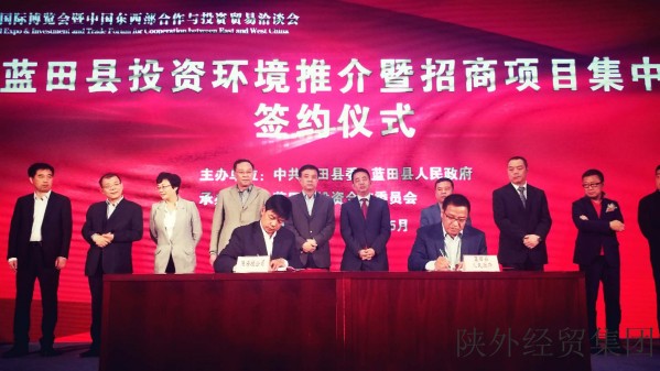 2018年5月 6日,陜海投公司受邀參加第三屆絲綢之路國際博覽會藍田縣投資環(huán)境推介暨招商項目簽約儀式,陜海投董事長丁永忠代表公司與藍田縣政府簽約,副總經(jīng)理劉軍、對外聯(lián)絡部部長黎璐、投融資部臨時負責人韓宇聰出席了本次會議。