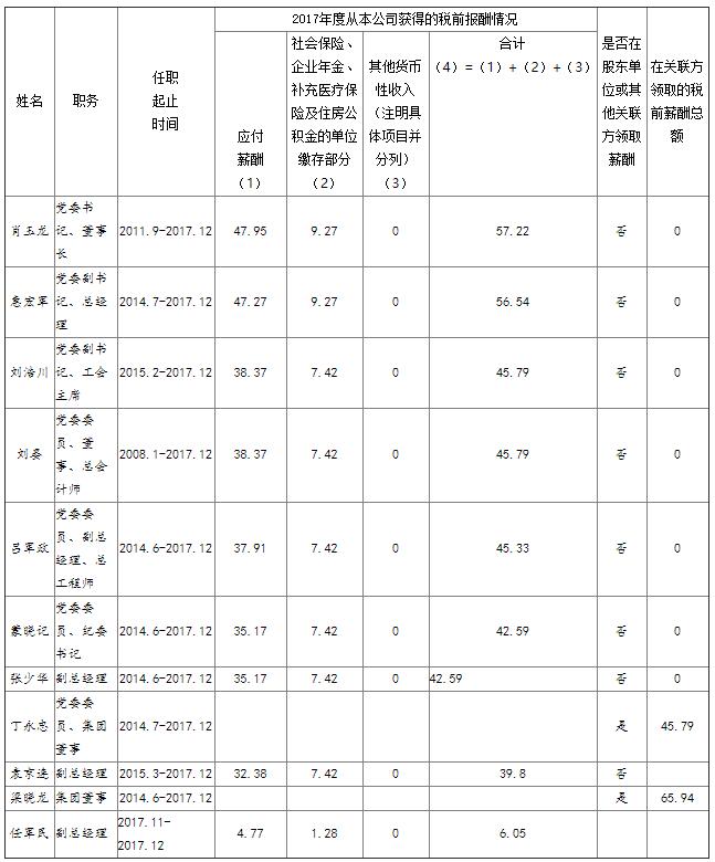 1.上表披露薪酬為我公司負(fù)責(zé)人2017年度全部應(yīng)發(fā)稅前薪酬,按國家規(guī)定由單位繳存各種社會(huì)保險(xiǎn)等。其中,第1項(xiàng)由省國資委核定。