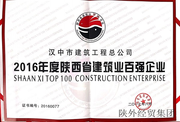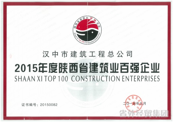 集團所屬漢中市建筑工程總公司喜獲“2015年度陜西省建筑業(yè)百強企業(yè)”榮譽稱號