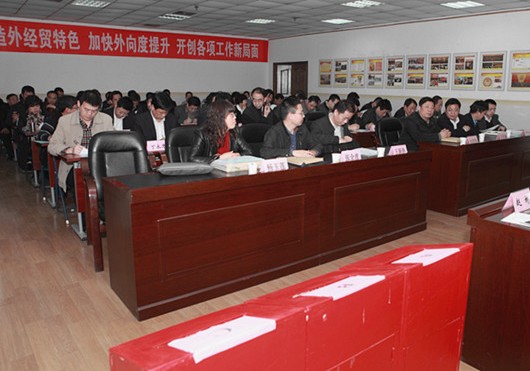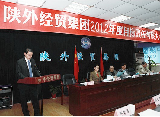 會議由考核組副組長、國資委副主任秦民生主持,國資委副書記何少華在會上作了動員講話,集團(tuán)董事長肖玉龍代表外經(jīng)貿(mào)集團(tuán)作了述職報告。