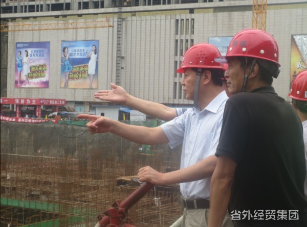 2012年7月9日下午集團公司董事長肖玉龍,在集團公司總會計師劉晏、經營管理部部長劉國強、建設三公司總經理任秀學陪同下到北城盛龍廣場2#商業(yè)綜合體項目檢查雨季安全施工。
