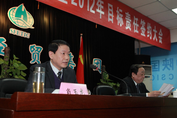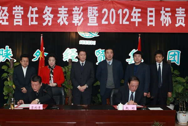 集團(tuán)公司總經(jīng)理趙彬首先在會(huì)上總結(jié)了集團(tuán)2011年度經(jīng)營工作,安排部署了2012年工作任務(wù),并與集團(tuán)公司所屬20多個(gè)經(jīng)營單位簽訂了2012年經(jīng)營、管理、黨風(fēng)廉政目標(biāo)責(zé)任書。