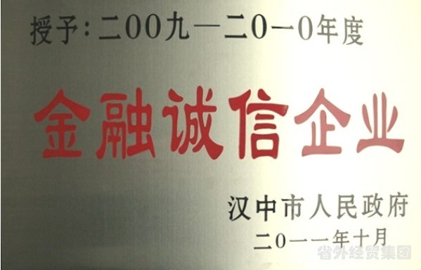 近日,在漢中市“金融誠信企業(yè)”評(píng)選活動(dòng)中,集團(tuán)所屬漢中市建筑工程總公司被漢中市政府授予“二OO九——二O一O年度金融誠信企業(yè)”