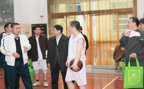 我集團(tuán)公司第一屆“爭優(yōu)杯”職工籃球賽剛剛落下帷幕,又迎來了另一場別開生面的籃球比賽活動。昨日,省國資委機(jī)關(guān)籃球隊在省國資委黨委副書記張養(yǎng)民為領(lǐng)隊的帶領(lǐng)下與我集團(tuán)機(jī)關(guān)籃球隊在省體育場亞特籃球館進(jìn)行了一場籃球友誼比賽,我集團(tuán)機(jī)關(guān)籃球隊以58:50險勝省國資委機(jī)關(guān)籃球隊。集團(tuán)公司黨委書記、董事長劉耀華及部分機(jī)關(guān)干部職工到比賽現(xiàn)場觀看。