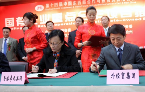 此次推介會,是陜西和西部省市擴(kuò)大對外開放、拓展交流合作、推動國有企業(yè)外向發(fā)展的一項重要舉措。眾多國有企業(yè)重點項目代表與國內(nèi)外客商進(jìn)行了深入接洽。簽約儀式上陜西省外經(jīng)貿(mào)實業(yè)集團(tuán)有限公司董事長劉耀華與香港李氏集團(tuán)、新加坡華星聯(lián)合有限公司就承包工程項目、勞務(wù)外派項目簽署了合作協(xié)議。