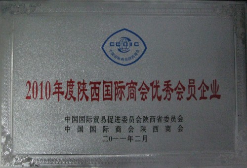 我集團(tuán)公司被授予2010年度陜西國際商會(huì)優(yōu)秀會(huì)員企業(yè)稱號(hào)。