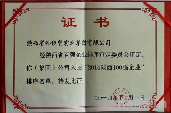 2014陜西企業(yè)100強(qiáng)評(píng)選工作是在省發(fā)改委、工信廳、財(cái)政廳、商務(wù)廳、國(guó)資委、金融辦、統(tǒng)計(jì)局等部門支持下,按照國(guó)際通行的排序原則,參照中國(guó)500強(qiáng)企業(yè)排序辦法,依據(jù)企業(yè)2013年度的營(yíng)業(yè)收入,在企業(yè)自主申報(bào)的基礎(chǔ)上進(jìn)行排序,并經(jīng)陜西省企業(yè)百?gòu)?qiáng)審定委員會(huì)審定后產(chǎn)生了“2014陜西企業(yè)100強(qiáng)”排序。