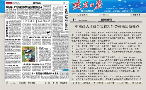 現(xiàn)在,來自陜西的中高端人才活躍在全球舞臺:LV、Prada、Hermes、Chanel、EsteeLauder、Polo、Sephora世界頂尖的奢侈品公司近年新增了不少來自陜西的員工;在新加坡彰宜國際機場、DFS環(huán)球免稅店等工作著500多名來自陜西的大學畢業(yè)生。首次引進、連續(xù)五批成功地舉辦了新加坡政府大型醫(yī)院中國護士招考,已經累計選派出160名護士赴新加坡政府大型醫(yī)院和醫(yī)療機構工作;向尼日利亞最大的華人機構——香港李氏集團選派260多名大學畢業(yè)生從事行政、會計、貿易和工廠類技術管理等崗位。