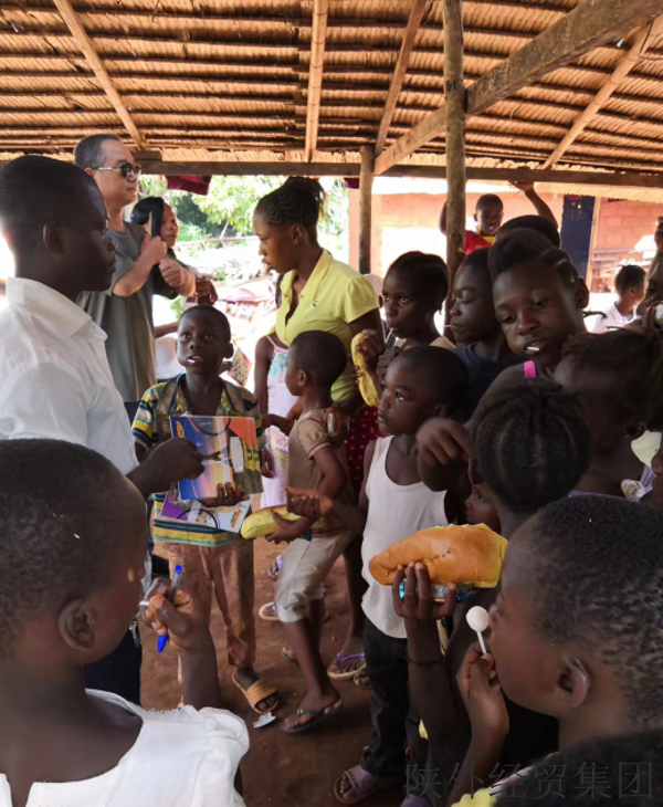 示范中心項目地處熱帶雨林腹地,當?shù)鼐用衿毡樨毨?,兒童常常因貧困失去受教育機會。在陜海投公司的大力支持下,全體援外專家和項目工作人員積極參與本次活動,大家紛紛捐錢捐物,向項目駐地的學校送去了圖書、本子、筆等學習用品和生活物資,讓他們感受這跨越重洋的愛與溫暖。